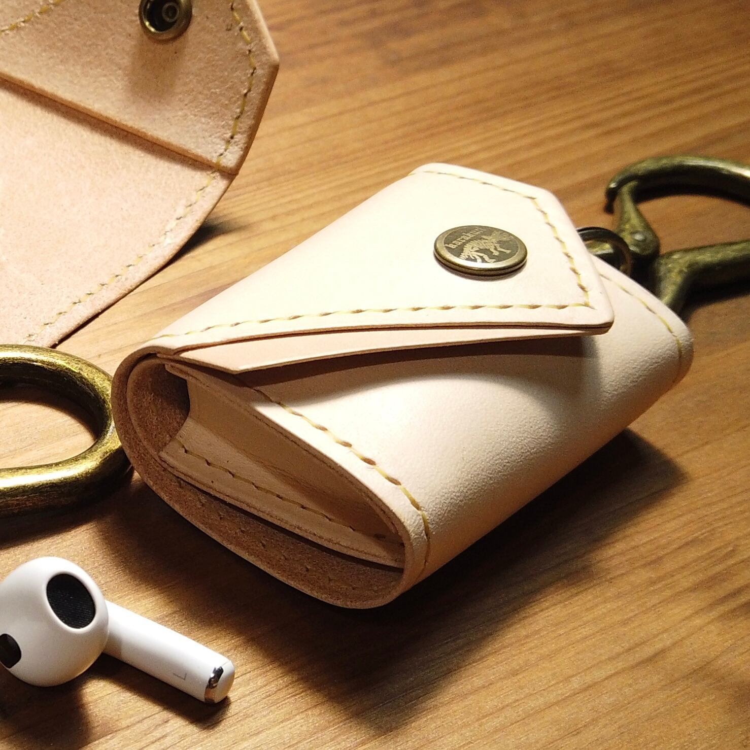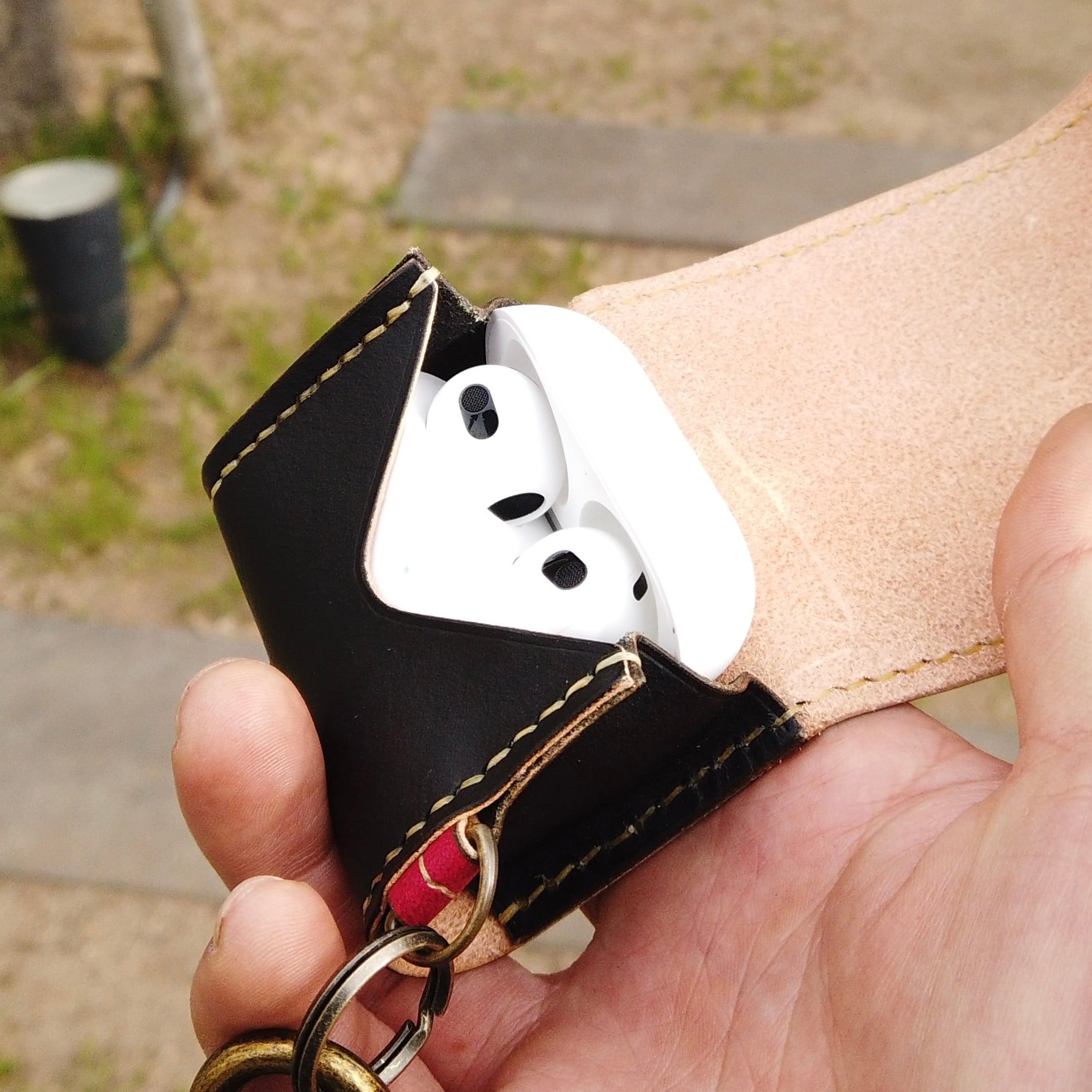 新品時はタイトに感じますが、数日で革がAirPodsの形状を記憶しスッポリと包み込むようにホールドしてくれます。